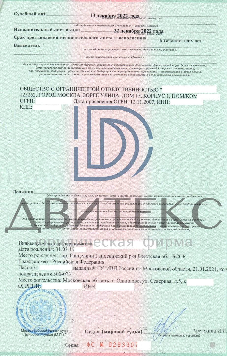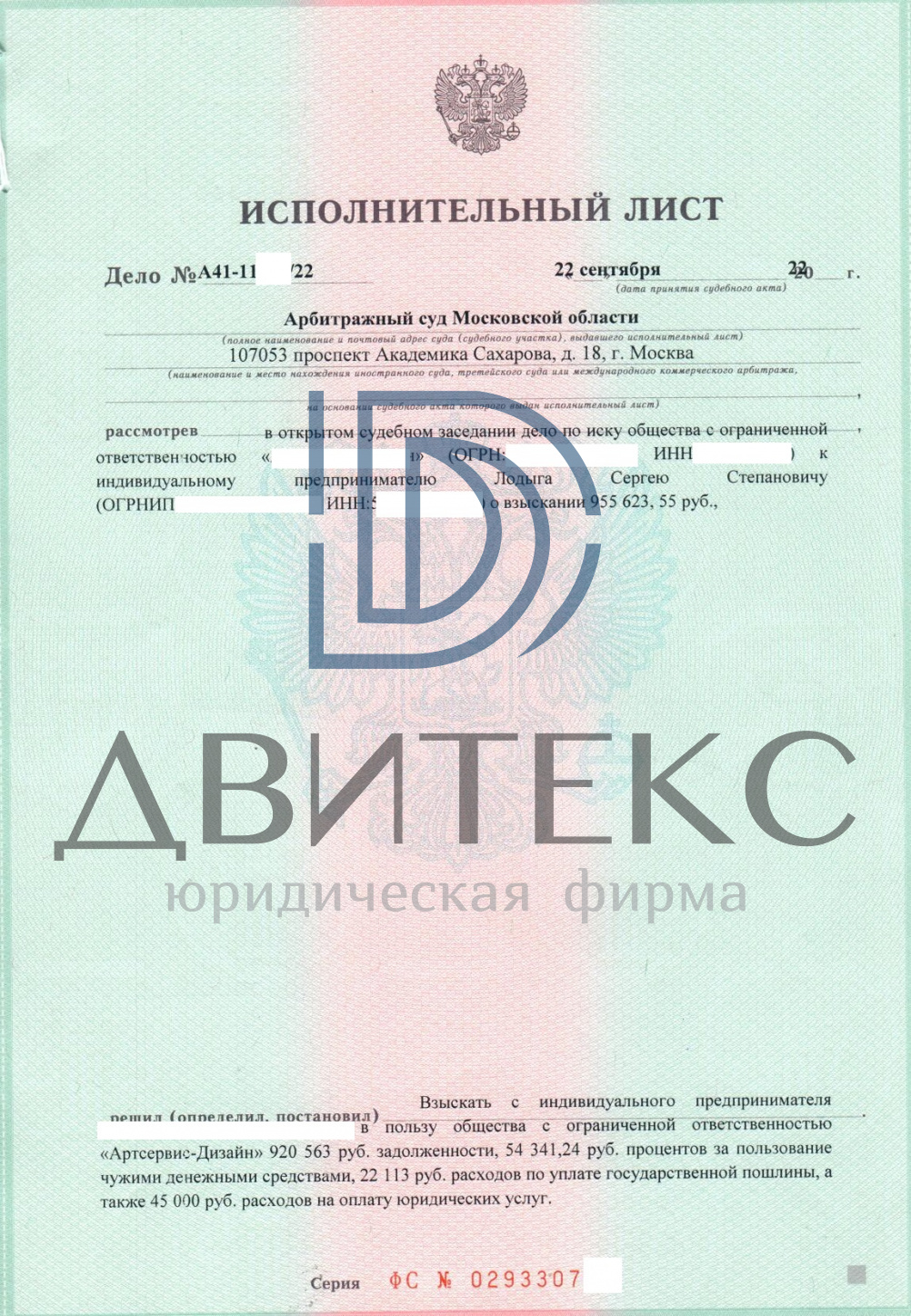 Юристы «Двитекс» подготовили необходимые документы, представили интересы доверителя в суде. Результатом нашей работы явилось вынесение арбитражным судом положительного решения о взыскании дебиторской задолженности по договору подряда. В дальнейшем наши сотрудники добились исполнения решения суда в полном объеме.