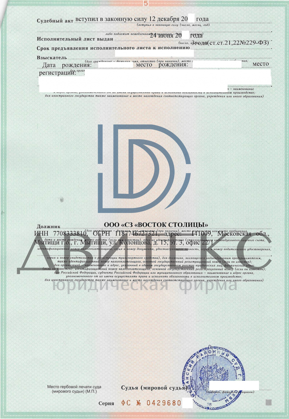 Результат нашей работы по взысканию стоимости строительных недостатков с ООО СЗ "Восток столицы" в Мещанском районном суде г. Москвы: